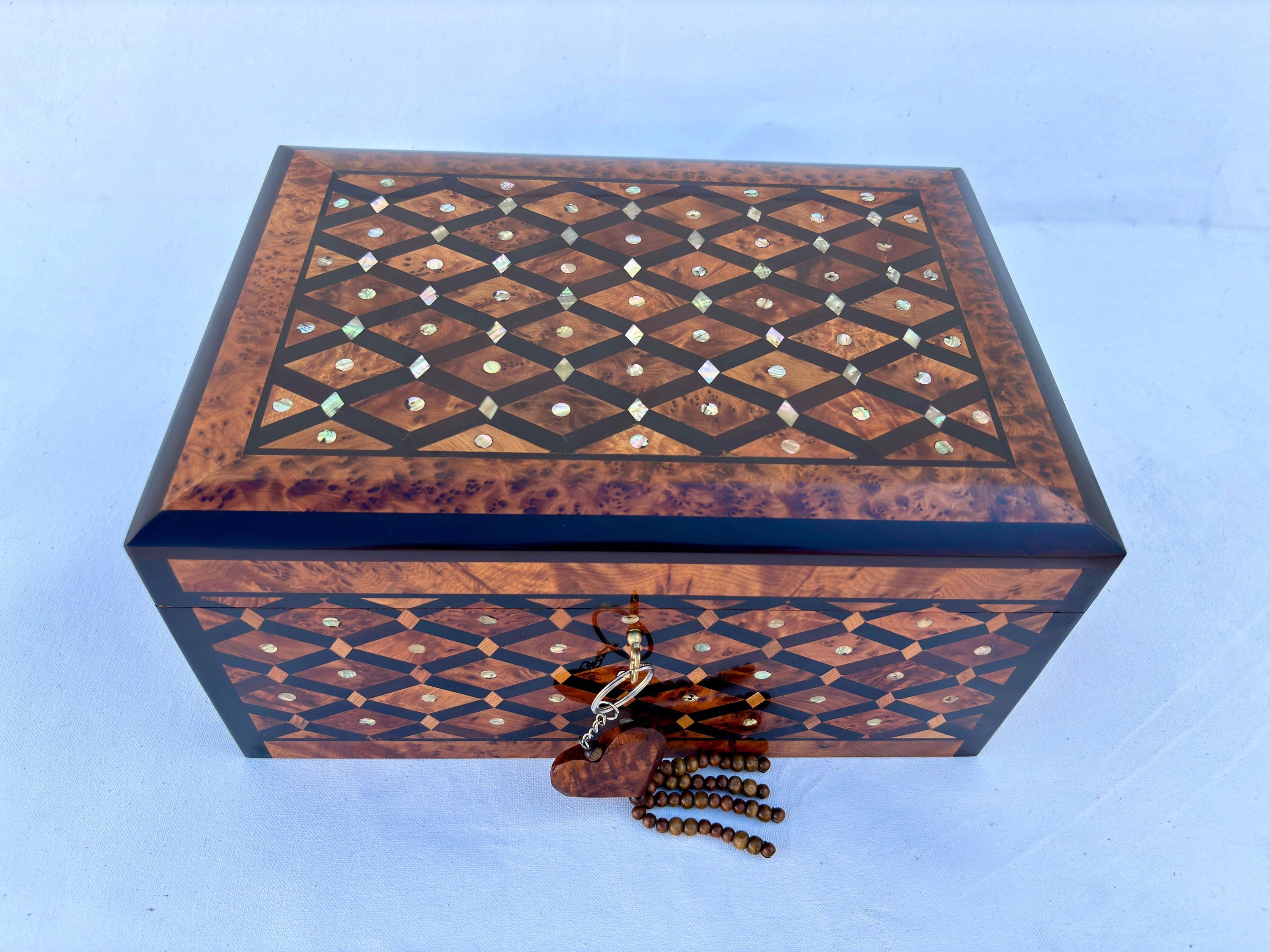 Handcrafted from Rare Thuya Wood: Each box is uniquely made from Thuya wood, celebrated for its distinctive grain patterns and rich, natural colors.