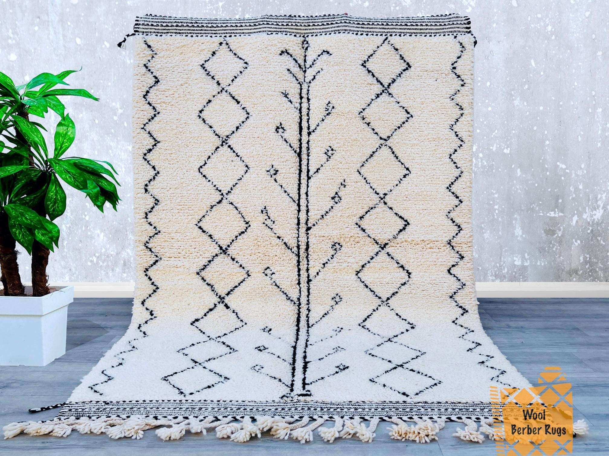 Minimalist Moroccan Rug - Handmade Beni Ourain Wool Carpet - Custom Berber Area Rug for Living Room