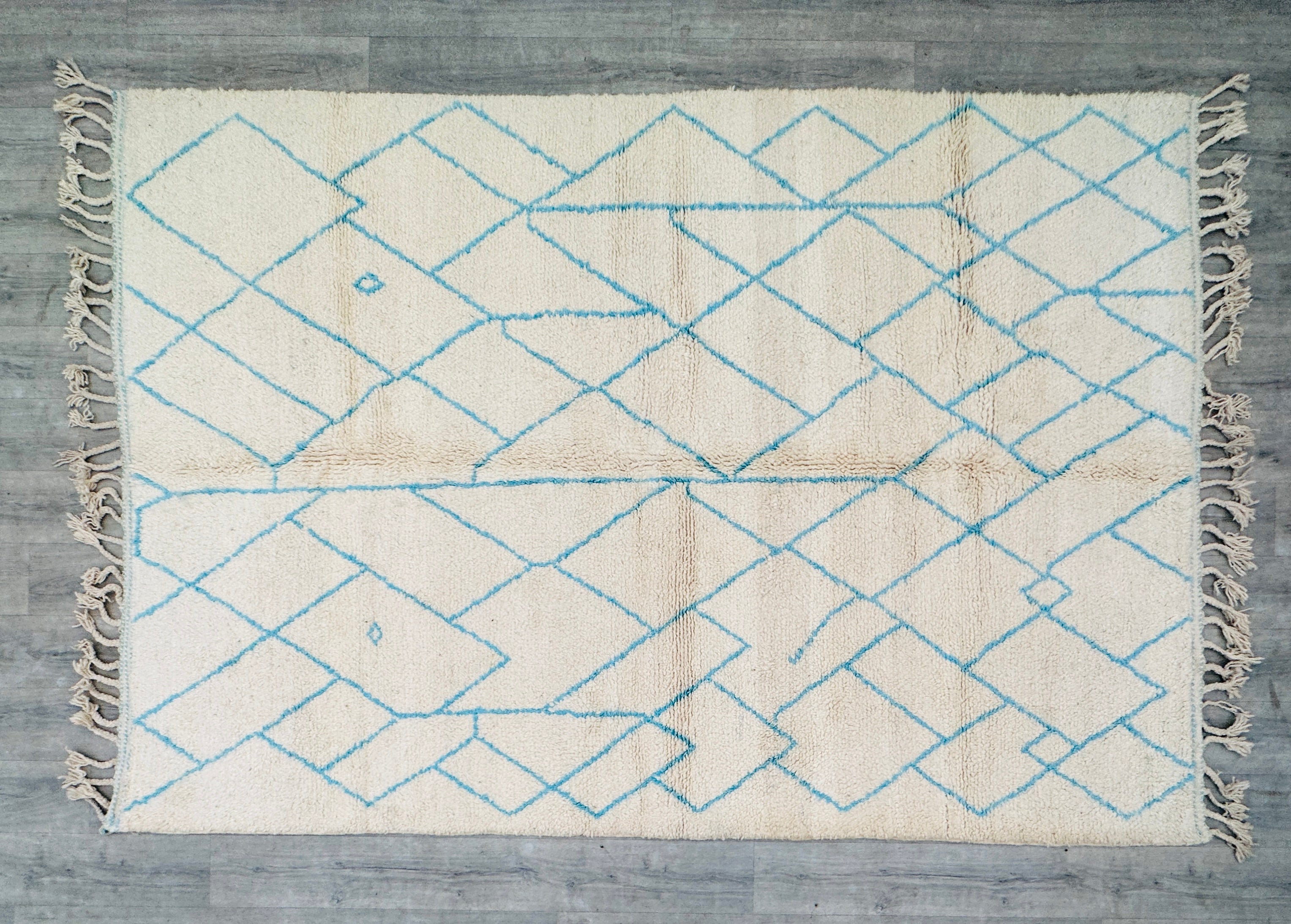 Discover the beauty of authentic Moroccan rugs, including Beni Ourain, Azilal, and vintage Berber carpets, meticulously handwoven by skilled artisans. Made from 100% organic wool, these rugs feature unique geometric patterns and soft textures, perfect for adding warmth and elegance to any space. Whether you're looking for a 7x9 ft living room centerpiece, a minimalist runner, or a custom Beni Ourain design, our collection offers fair-trade, ethically sourced Moroccan rugs. Available in ivory, blue, turquoise, and more, these hand-knotted carpets bring a touch of Bohemian and traditional Moroccan charm to modern interiors. Free shipping options available on select pieces.