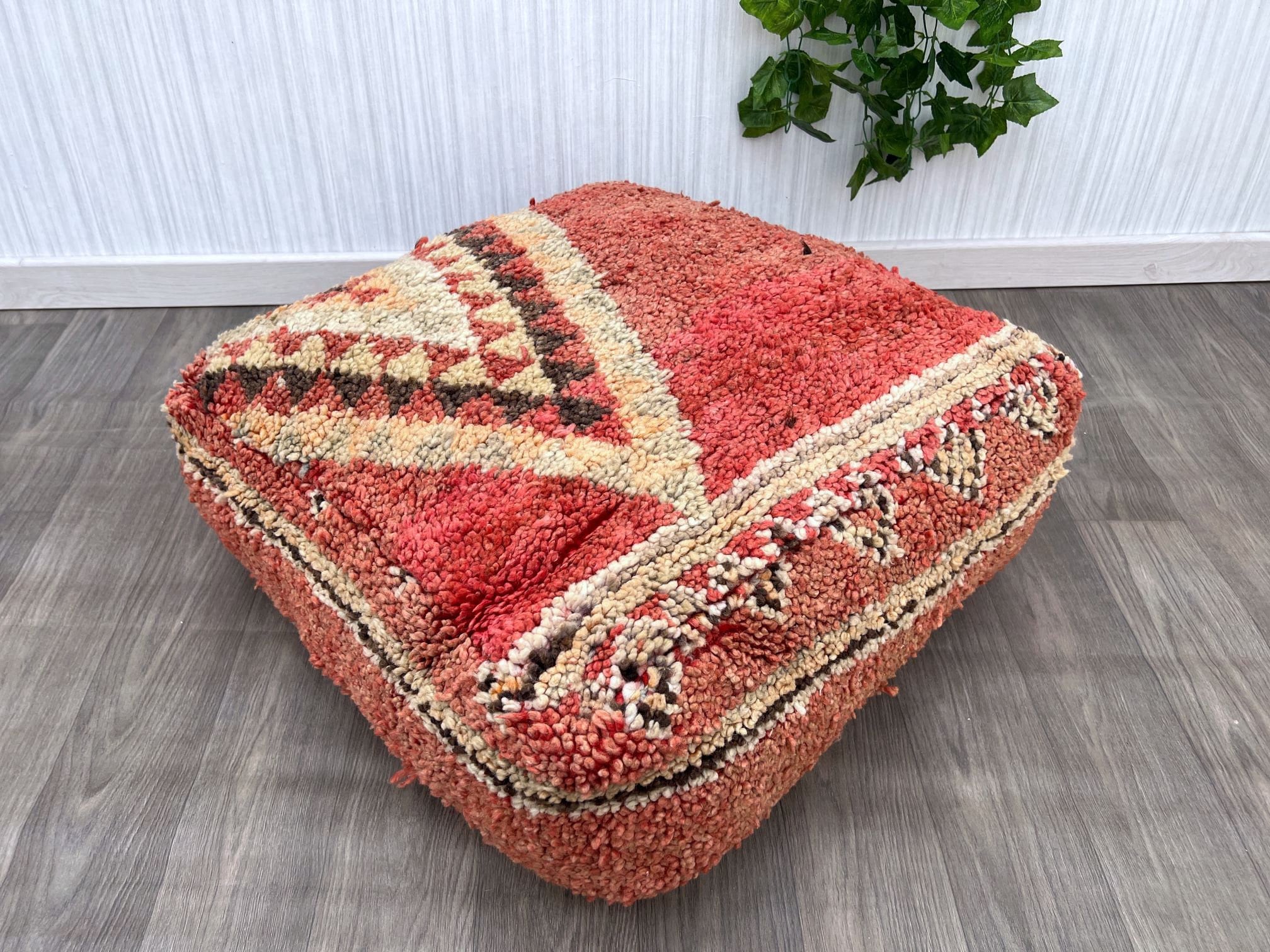 Moroccan poufs in organic wool, dyed with natural colors, bring a cozy, boho vibe to any room. Handmade and authentic, these cushions enhance your decor with warmth, color, and Moroccan artistry.