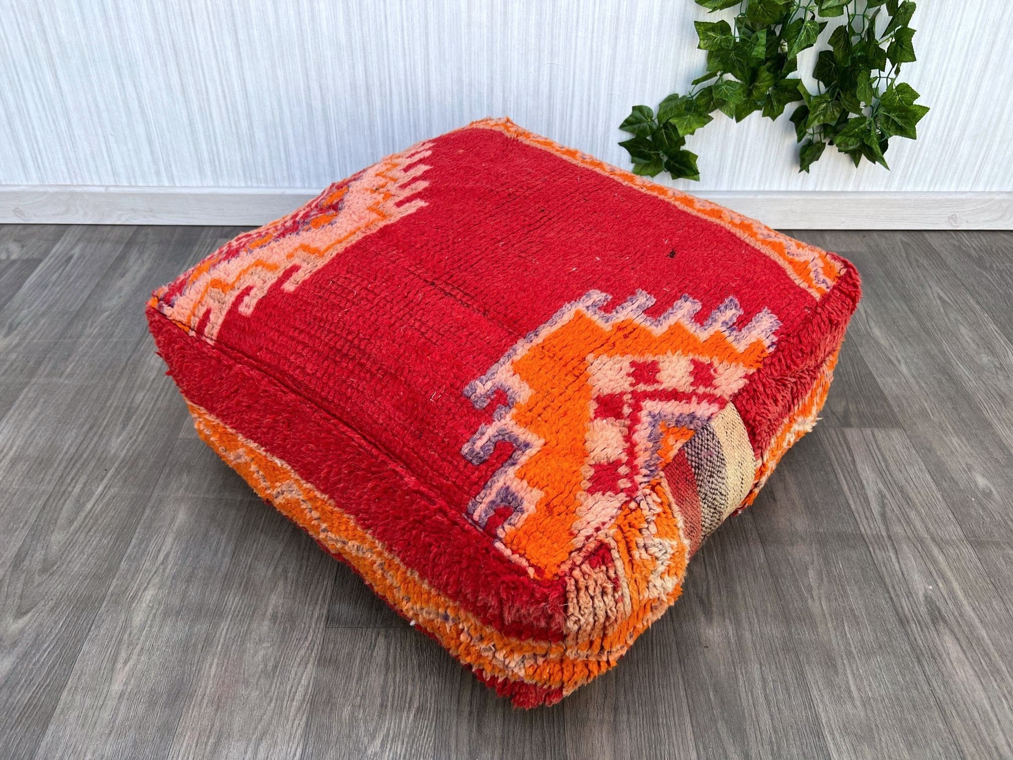 Moroccan poufs in organic wool bring warmth and exotic color to any space. Naturally dyed and hand-embroidered, these cushions add a bohemian, cozy vibe to your home, showcasing true Moroccan craftsmanship.