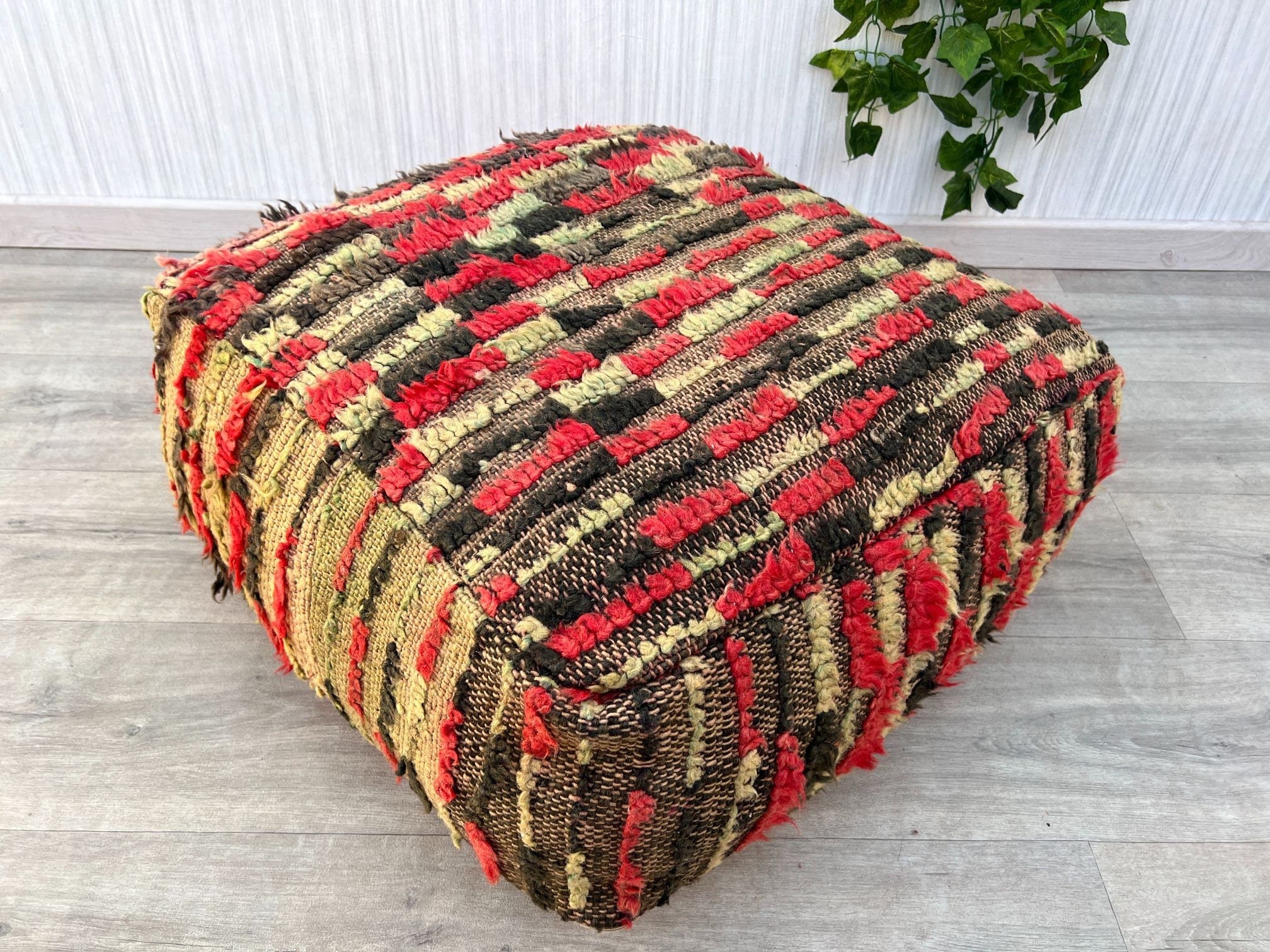 Moroccan poufs and floor cushions in natural wool add boho charm and elegance to any space. Naturally dyed, hand-embroidered Berber cushions bring authentic warmth and cozy comfort to your decor.
